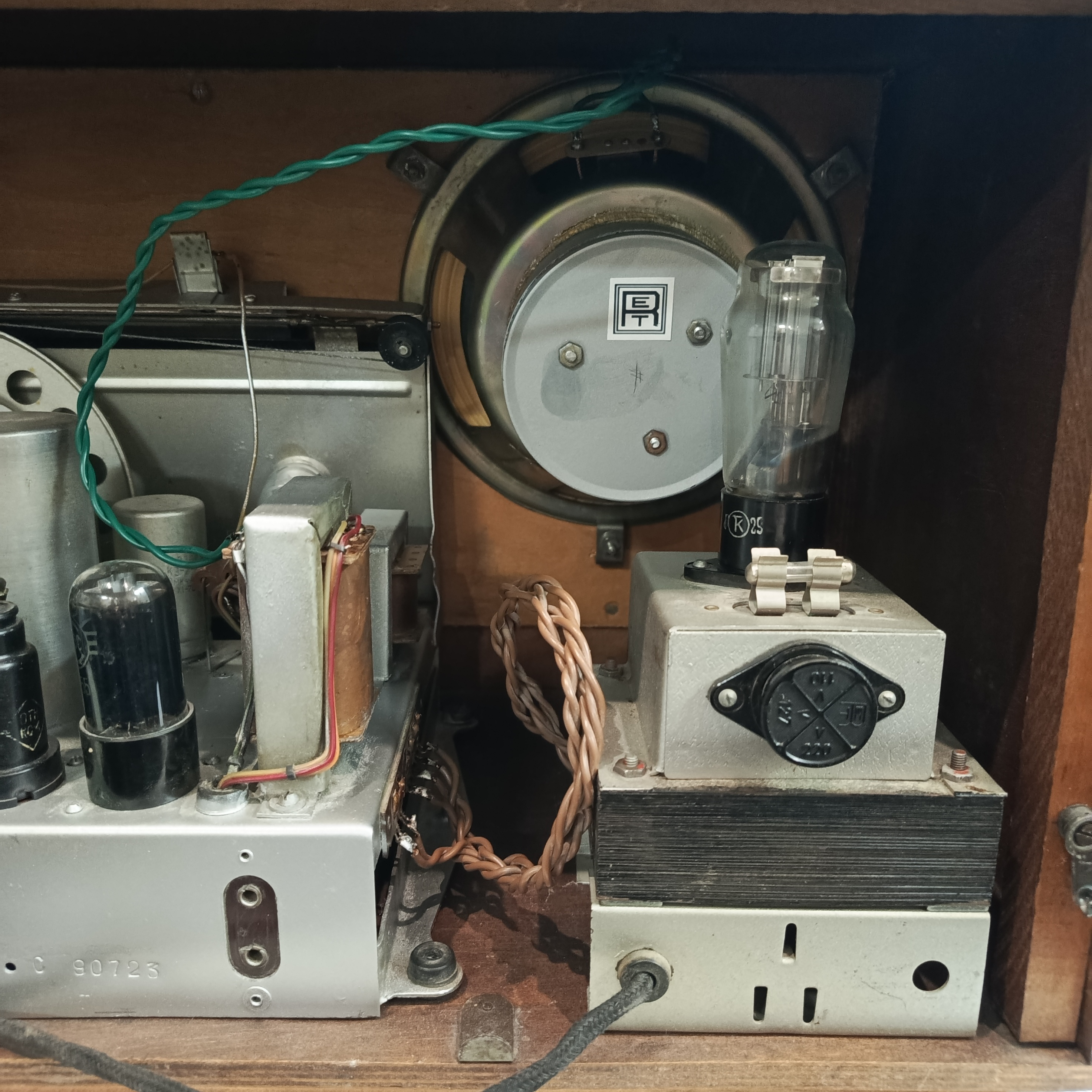 Шасси помыто отревизировано, на удивление работ по нему было немного: отремонтированы оборванные контура ДВ и КВ-II, отремонтирован выключатель сети, да припаян разъём динамика с новыми проводами.