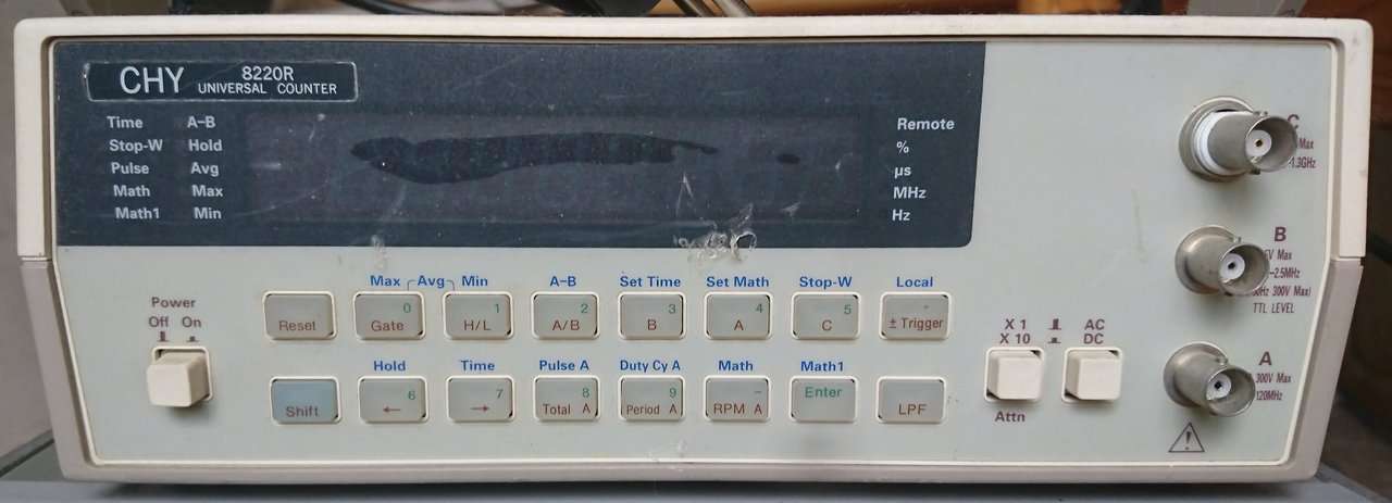 Частотомер CHY 8220R. На экране наклеена плёнка. Не пользовались. Пролежал на складе. Провод сетевой и сигнальный. 8000 рублей.