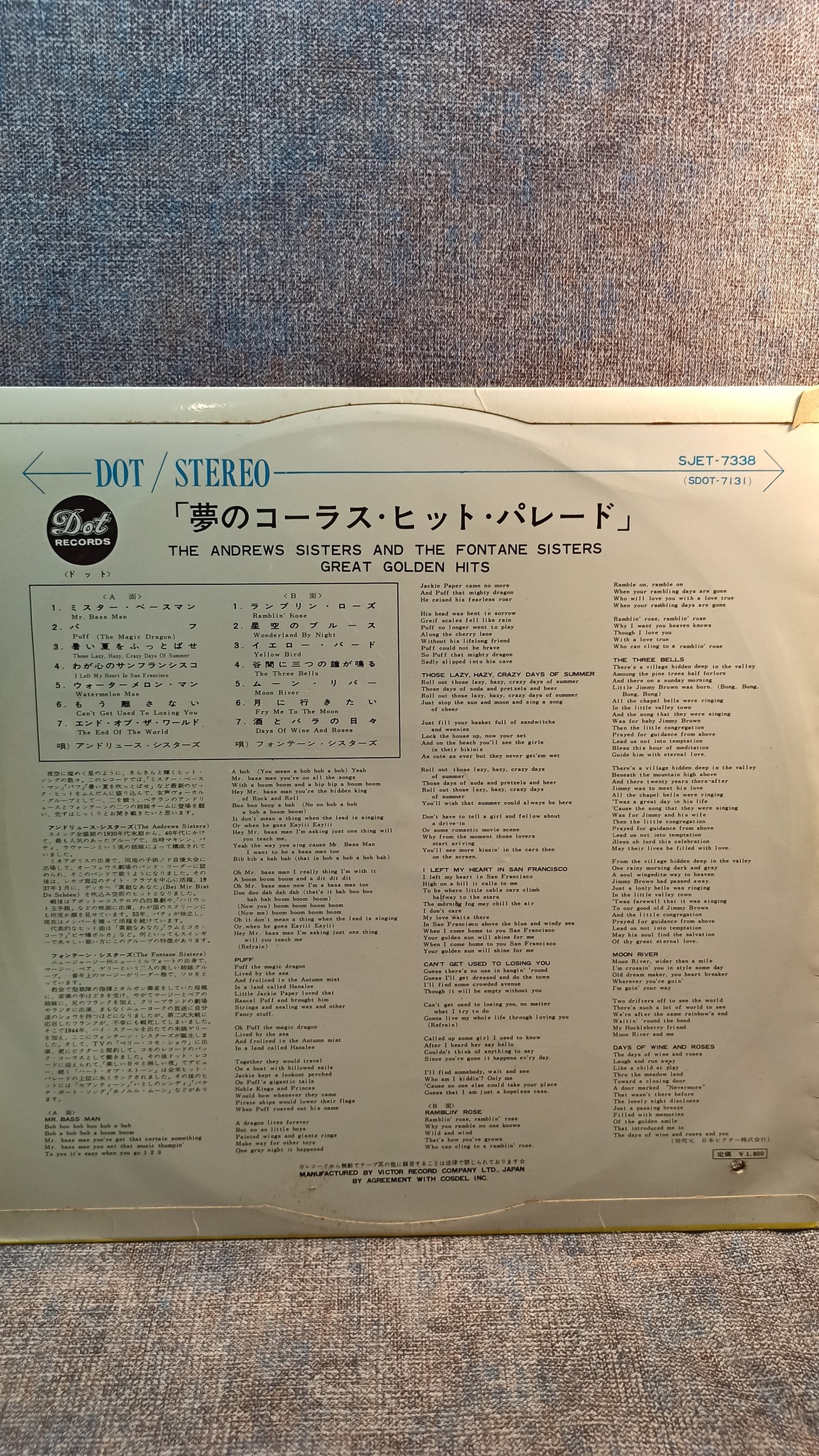 THE ANDREWS SISTERS The Fontane Sisters Great Golden Hits Dot Ultra Stereophonic Rec. SJET7338 SDOT7131 JAPAN Ex- 1-Ex---2-Ex 1200