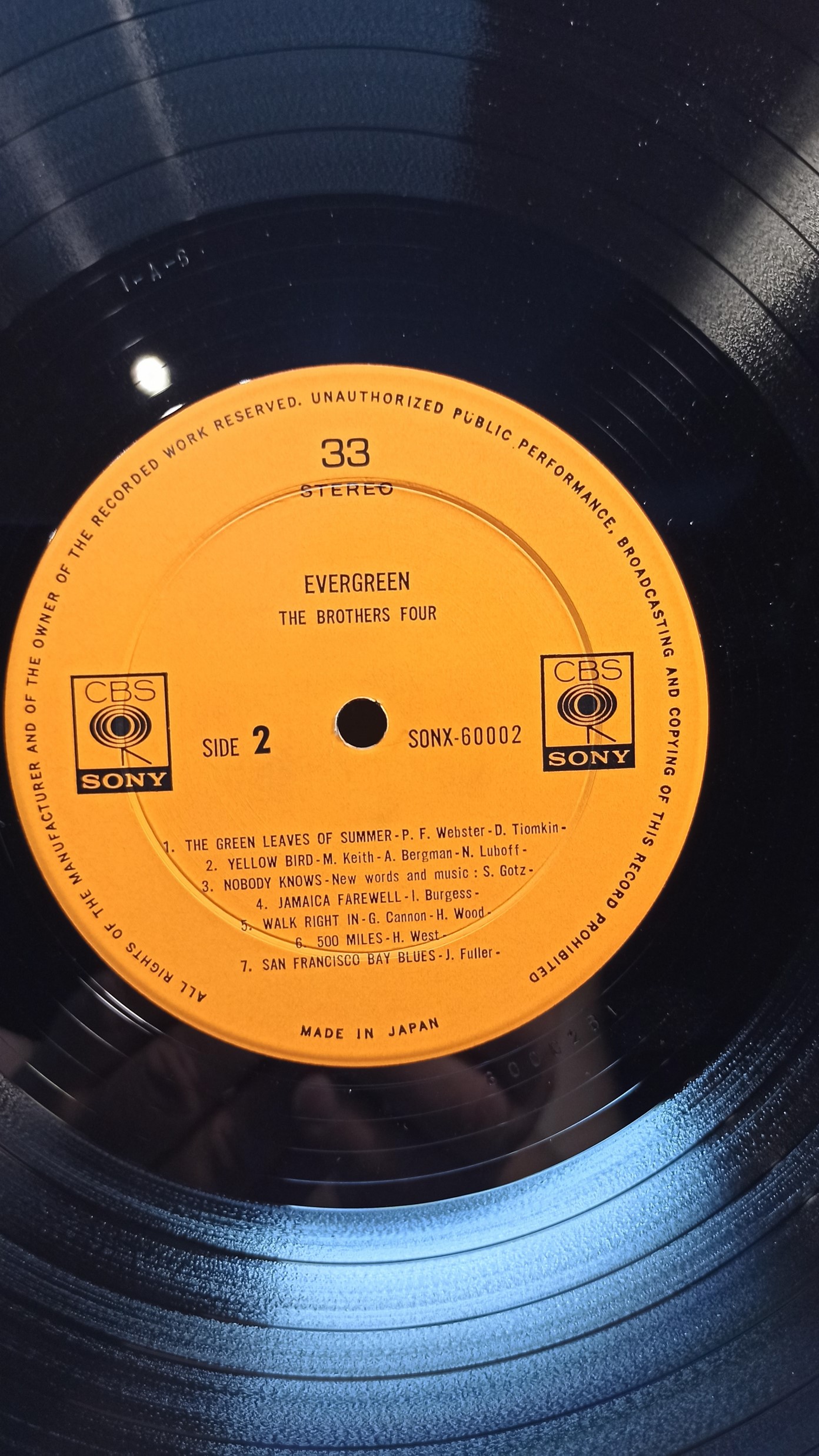 THE BROTHERS FOUR Ever Green CBS Sony SONX 60002 разворот, JAPAN Ex/Ex+ 1000