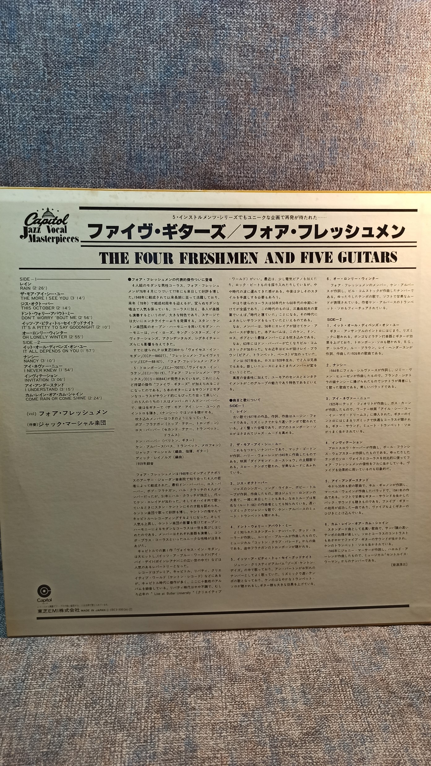 THE FOUR FRESHMEN AND FIVE GUITARS Capitol rec. ECJ-50026 ST1-1255 ST2-1255 JAPAN Ex+/Ex 1200