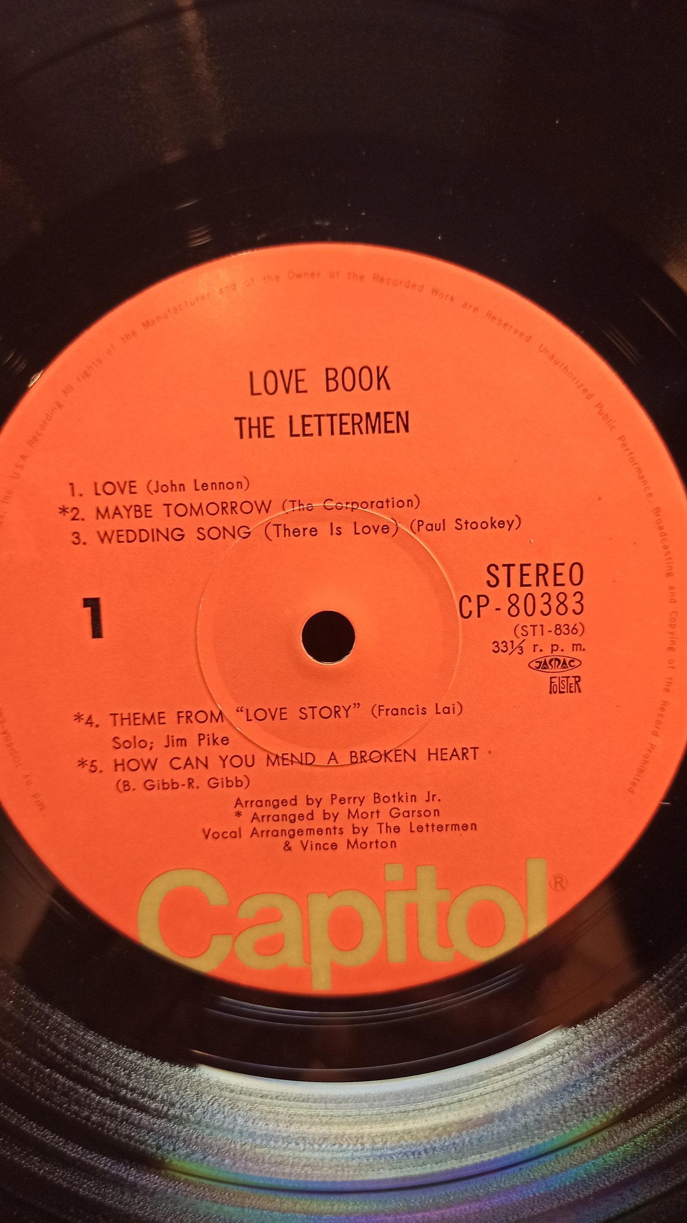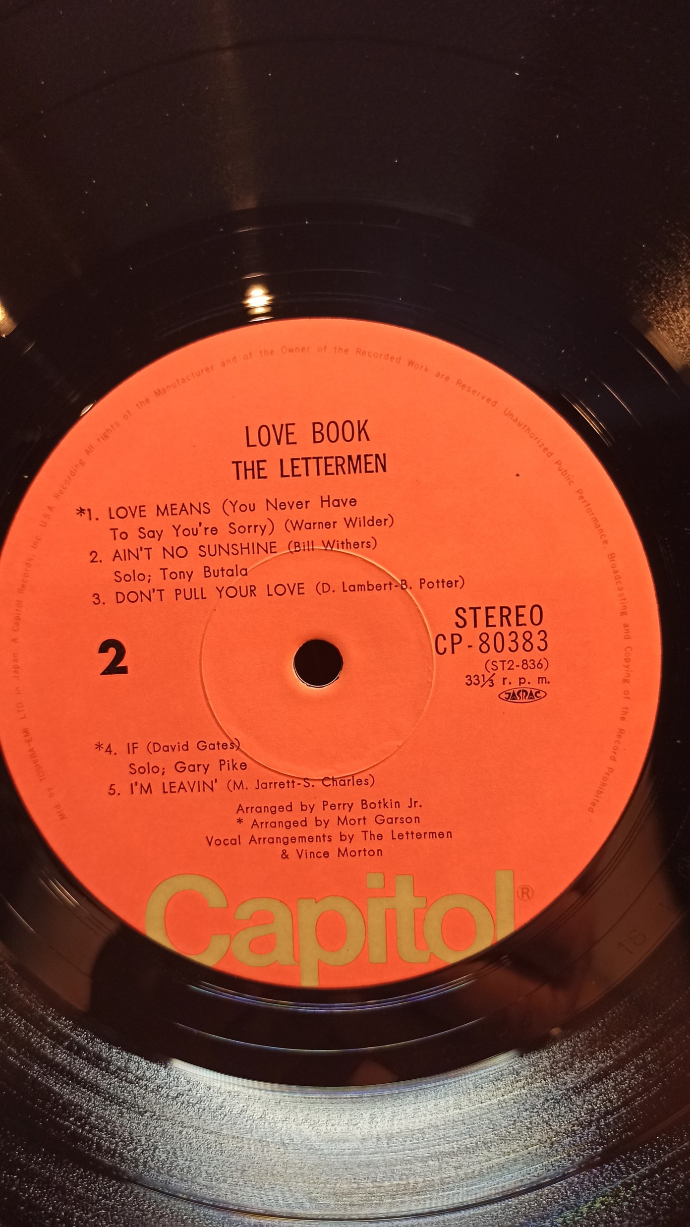 THE LETTERMEN Love Book Capitol Rec. CP-80383 ST1-836 ST2-836 разворот, JAPAN Ex/Ex 800