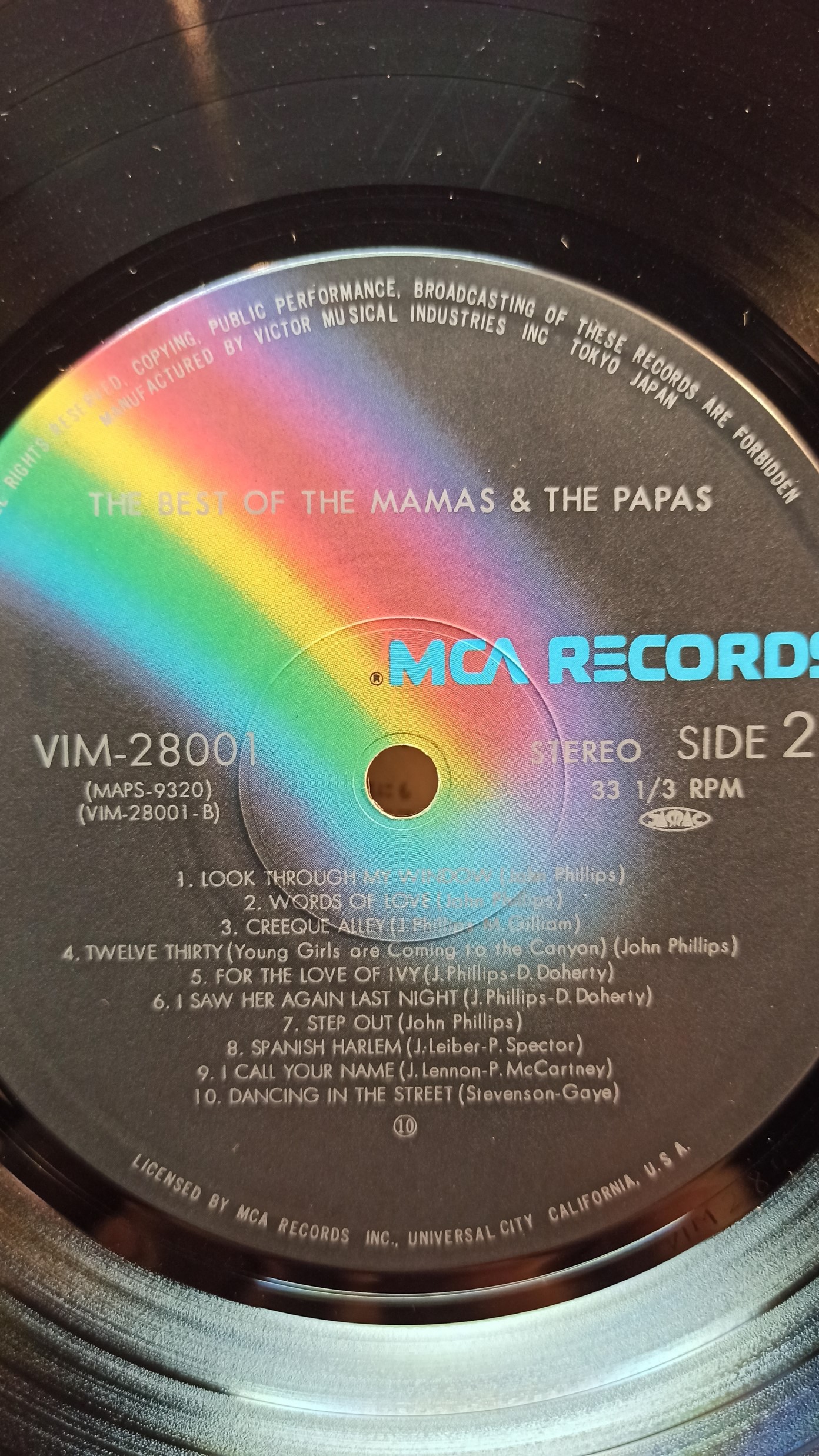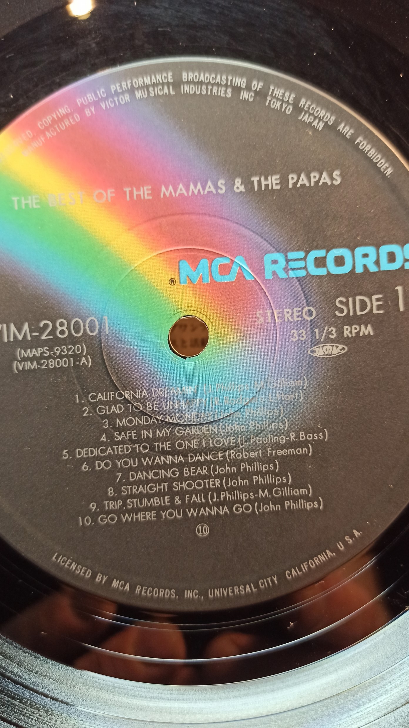 THE MAMAS & THE PAPAS The best Of MCA Rec. VIM-28001 MAPS-9320 VIM-28001AB JAPAN Ex/Ex 1200