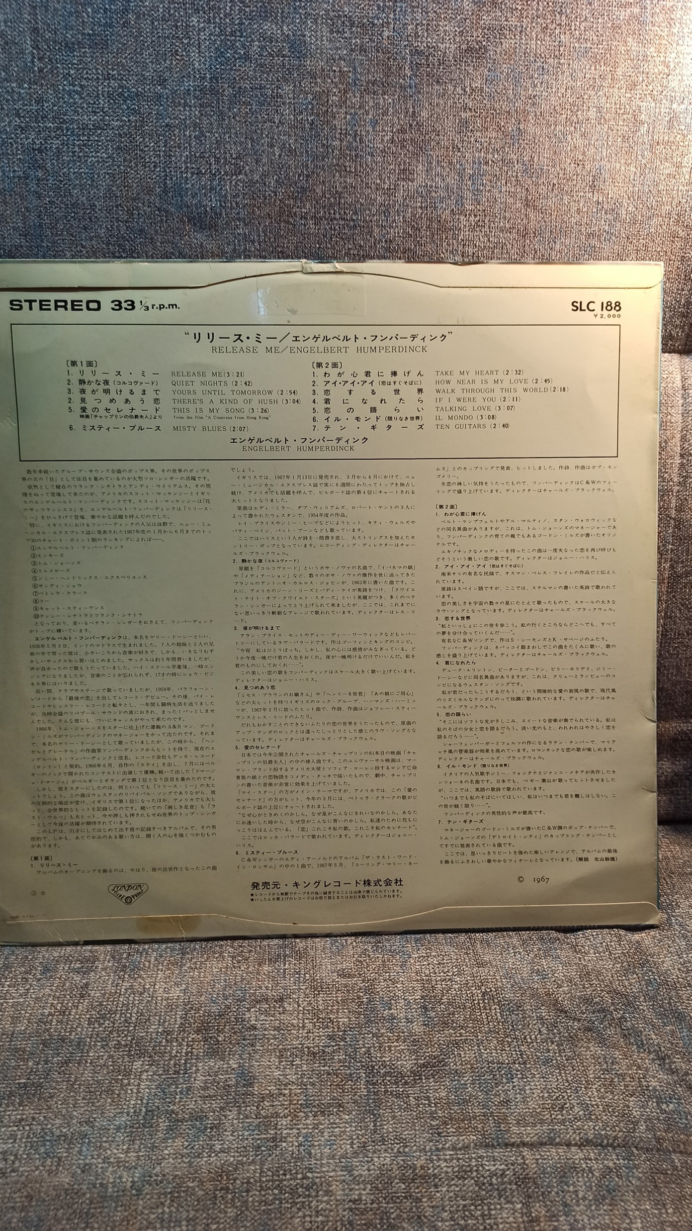 ENGELBERT HUMPERDINCK Release Me London SLC-188, JAPAN 1200