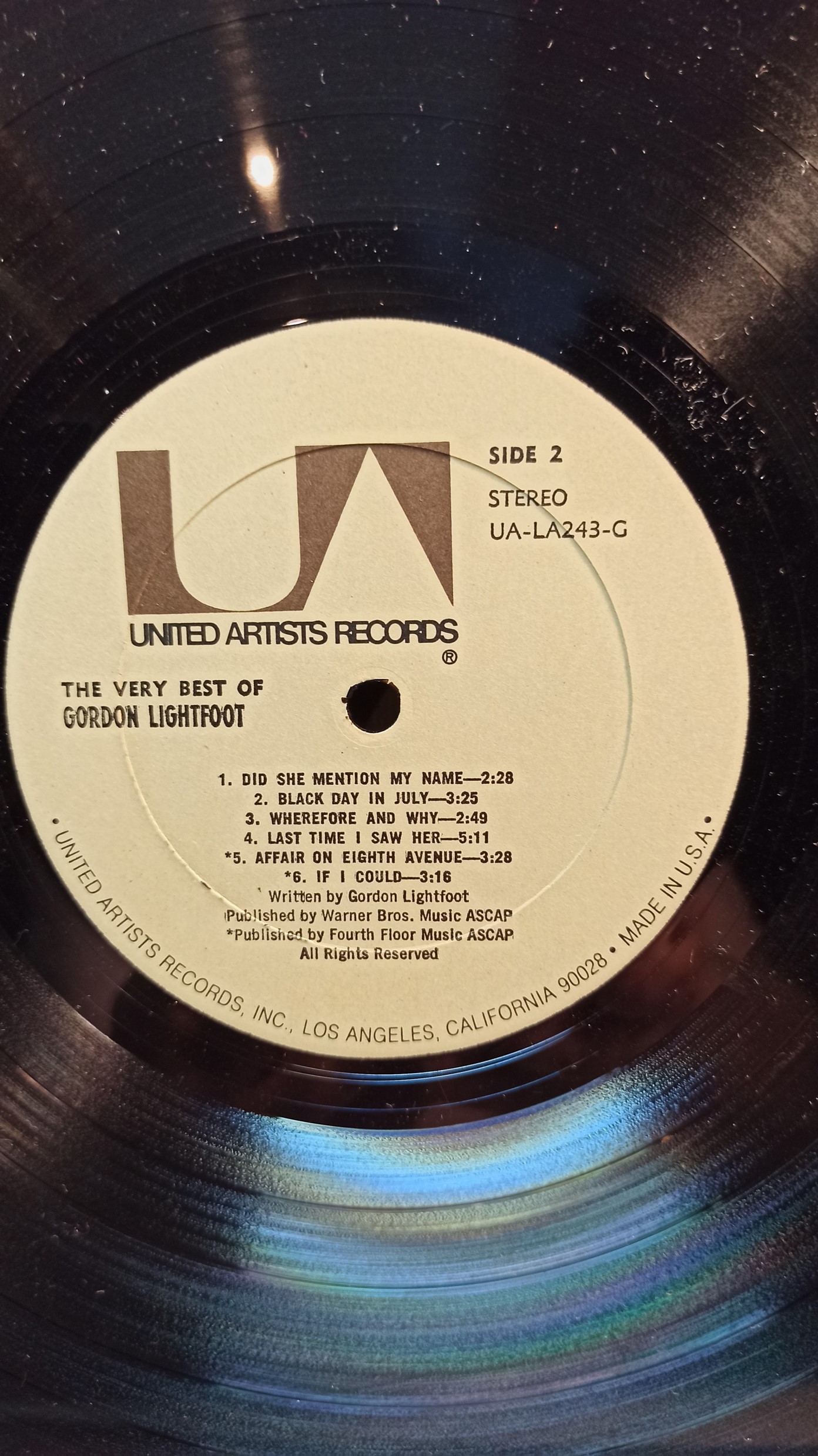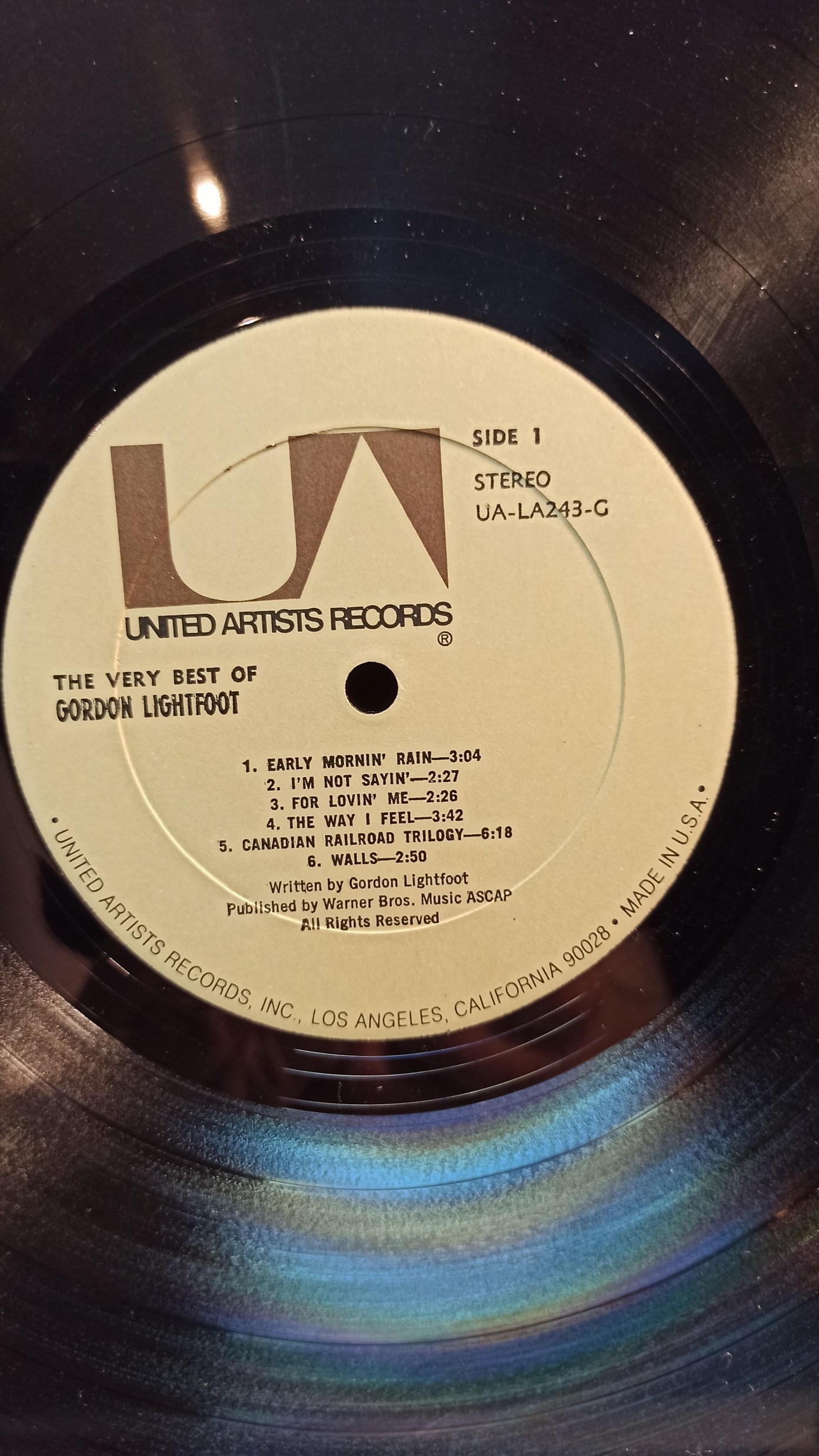 GORDON LIGHTFOOT The very best of UA Rec. USA UA-LA-243-G Ex/Ex 500