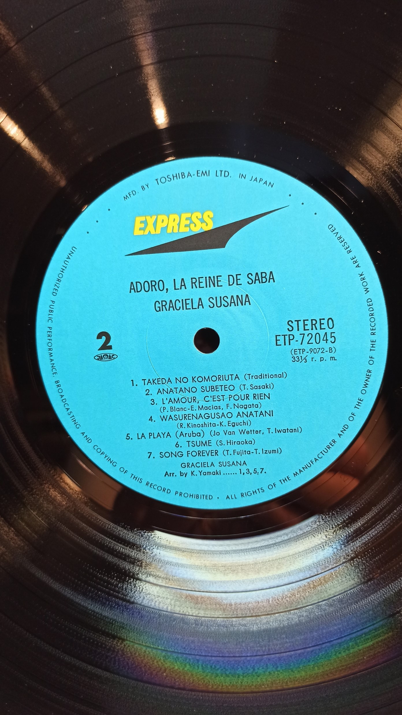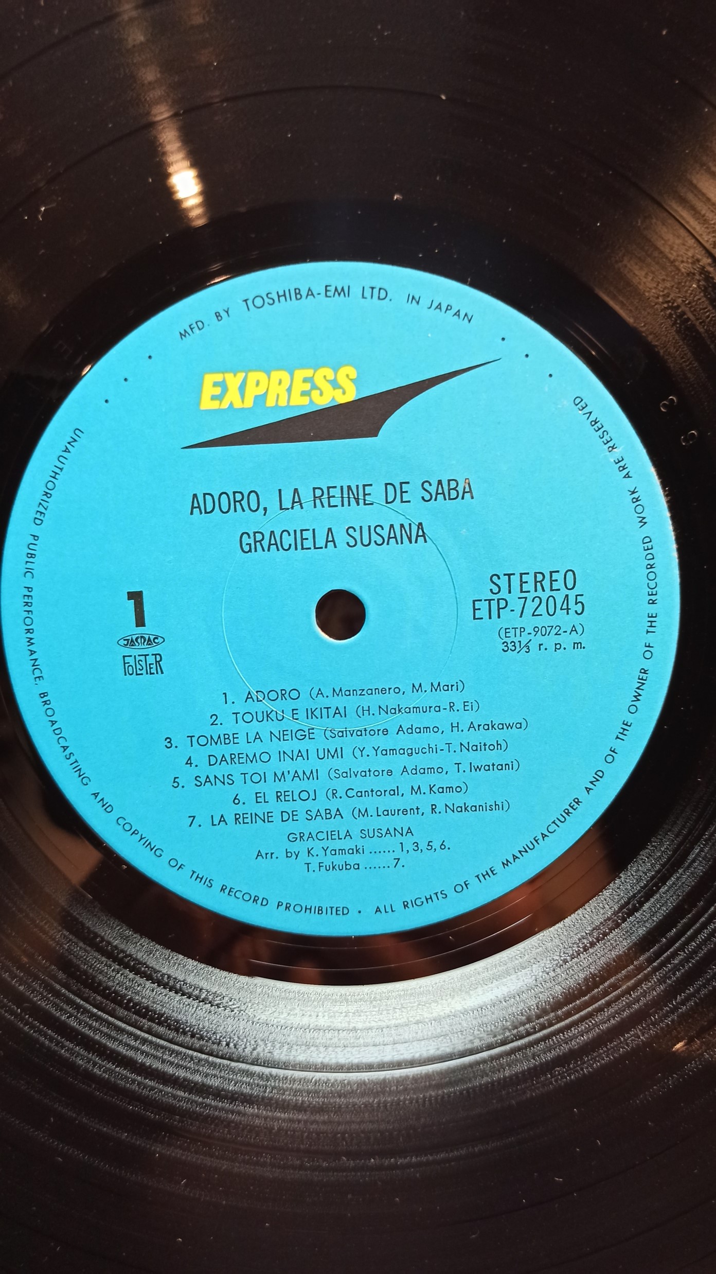 GRACIELA SUSANA Express Rec. ETP-72027-A,В JAPAN Ex/Ex 800