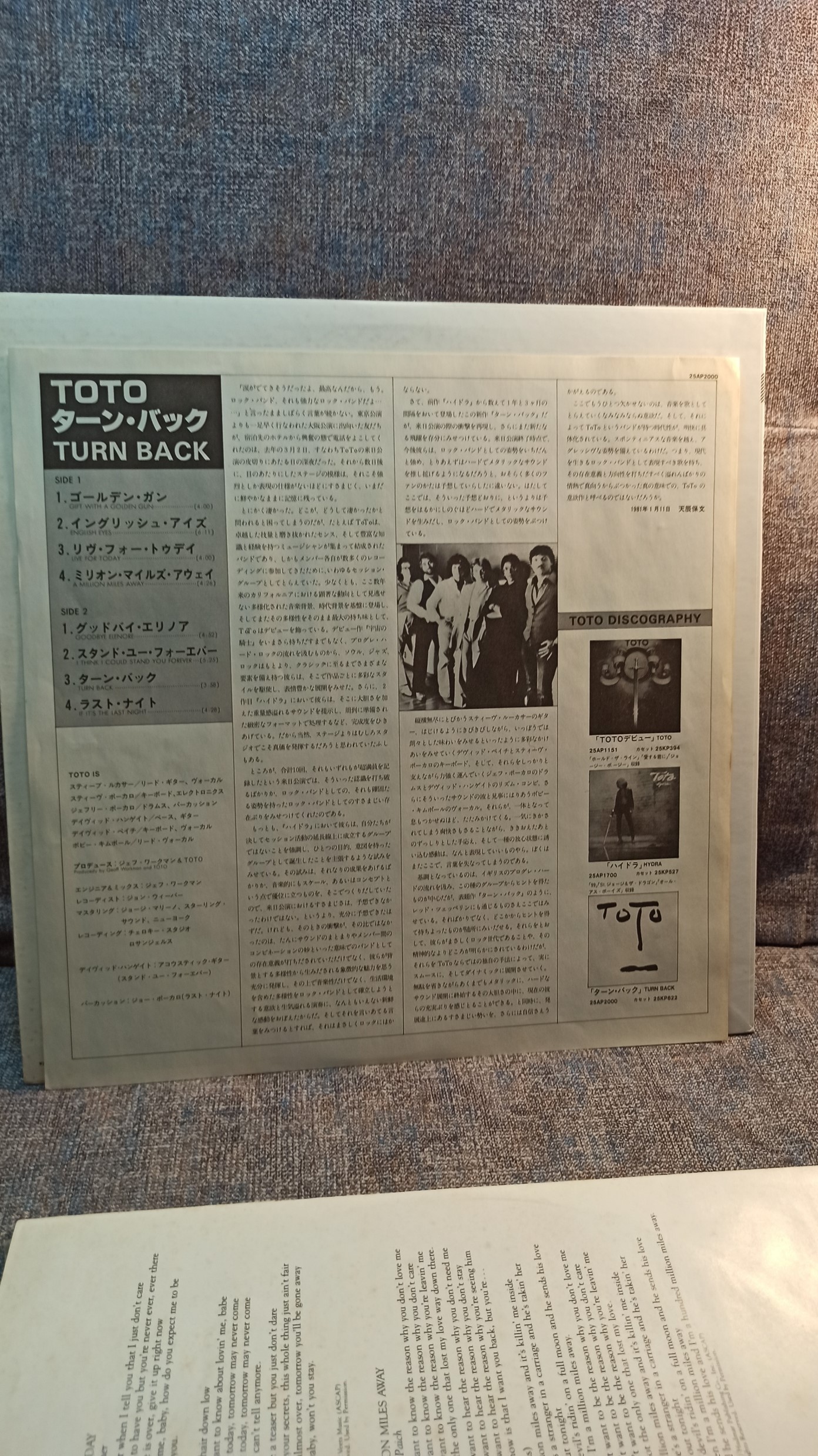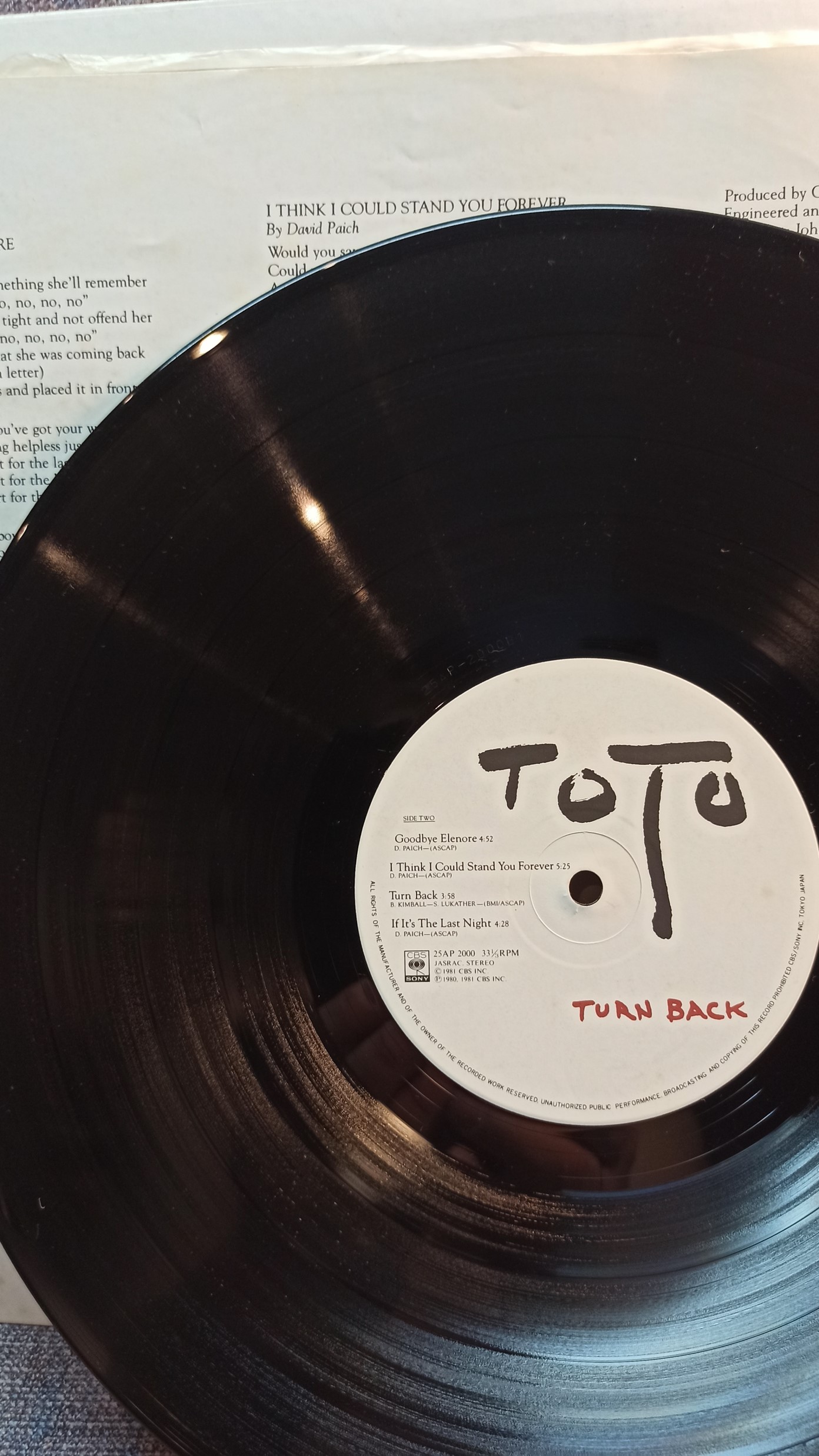TOTO Turn Back 25AP-2000A1B1 CBS Sony Japan Ex/Ex
