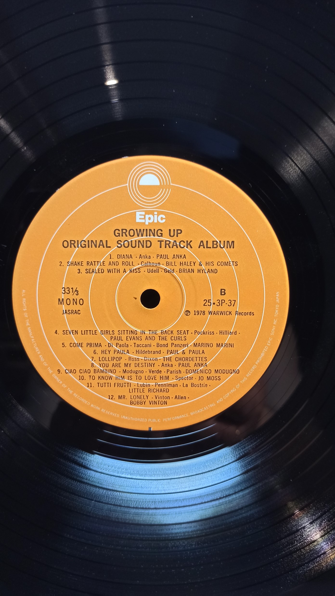 GROWING UP Original sound track album 25 Incredible Hits Epic Japan 25-3P-37A3B4 Ex/Ex 1000