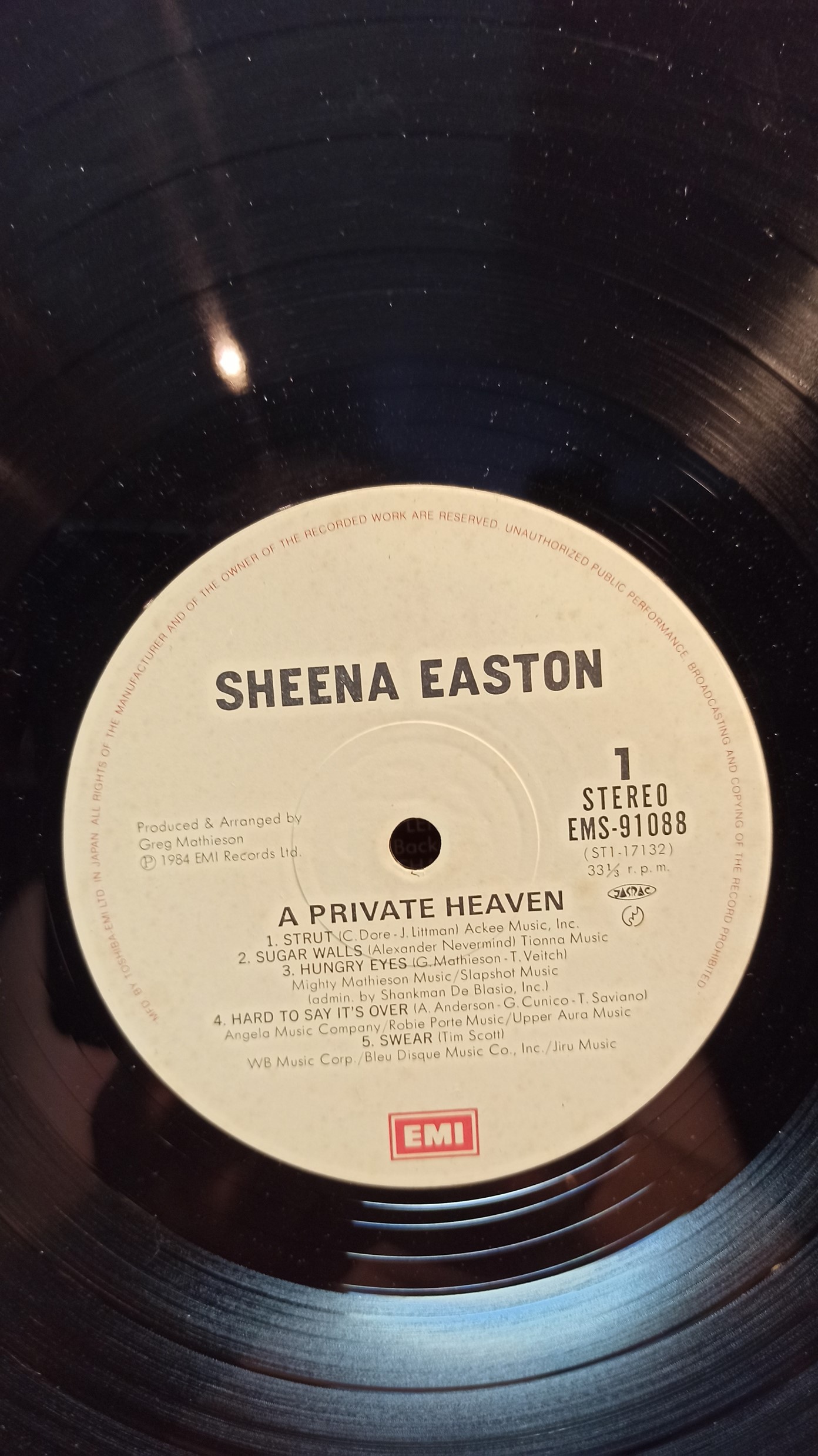 SHEENA EASTON A Private Heaven EMI rec. EMS-91088 ST2-17132 JAPAN Ex/Ex 1000