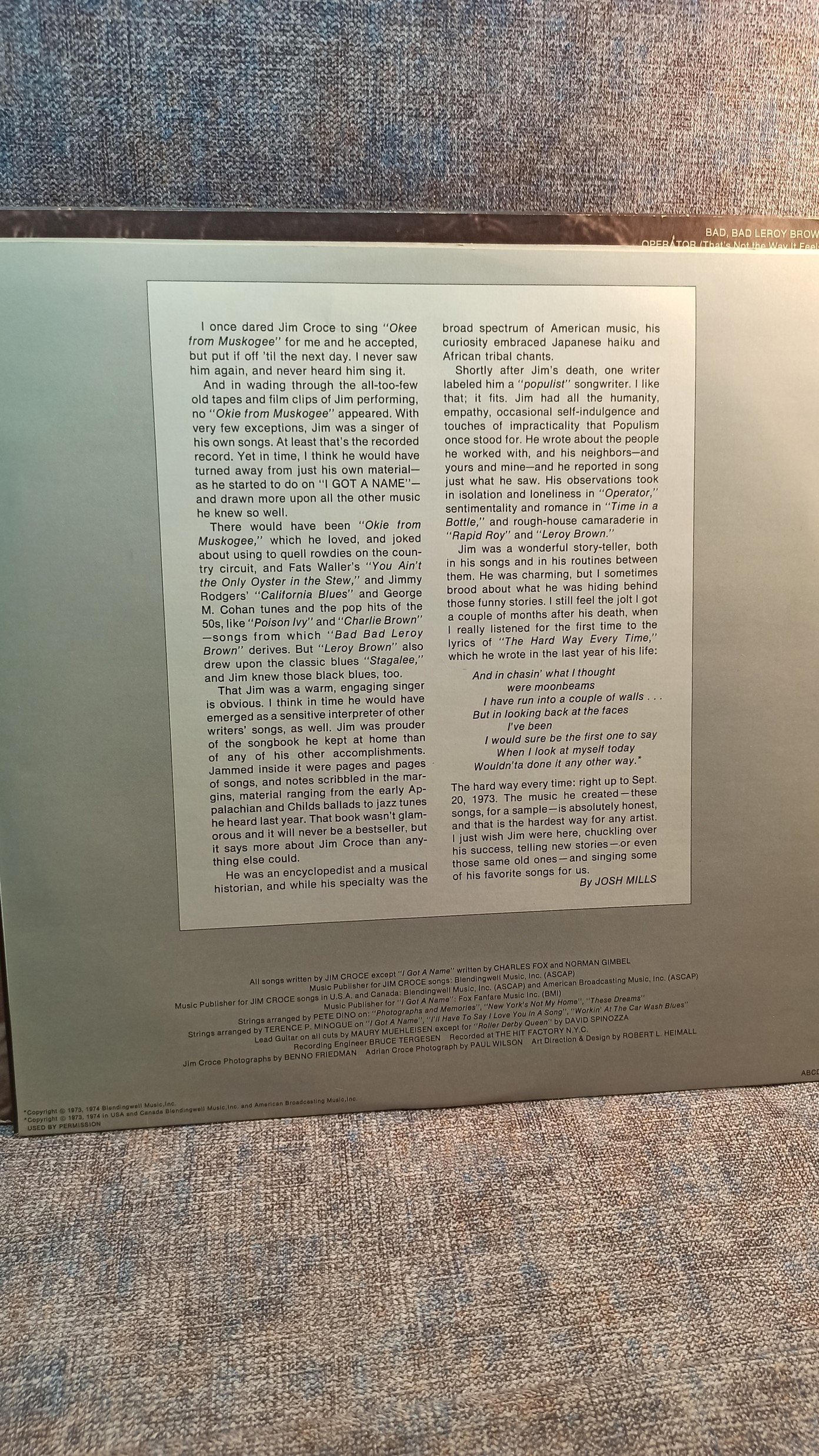 JIM CROSE Photographs and memories His Greatest Hits ABC Rec.USA ABCD-835-AB Ex/Ex 1000