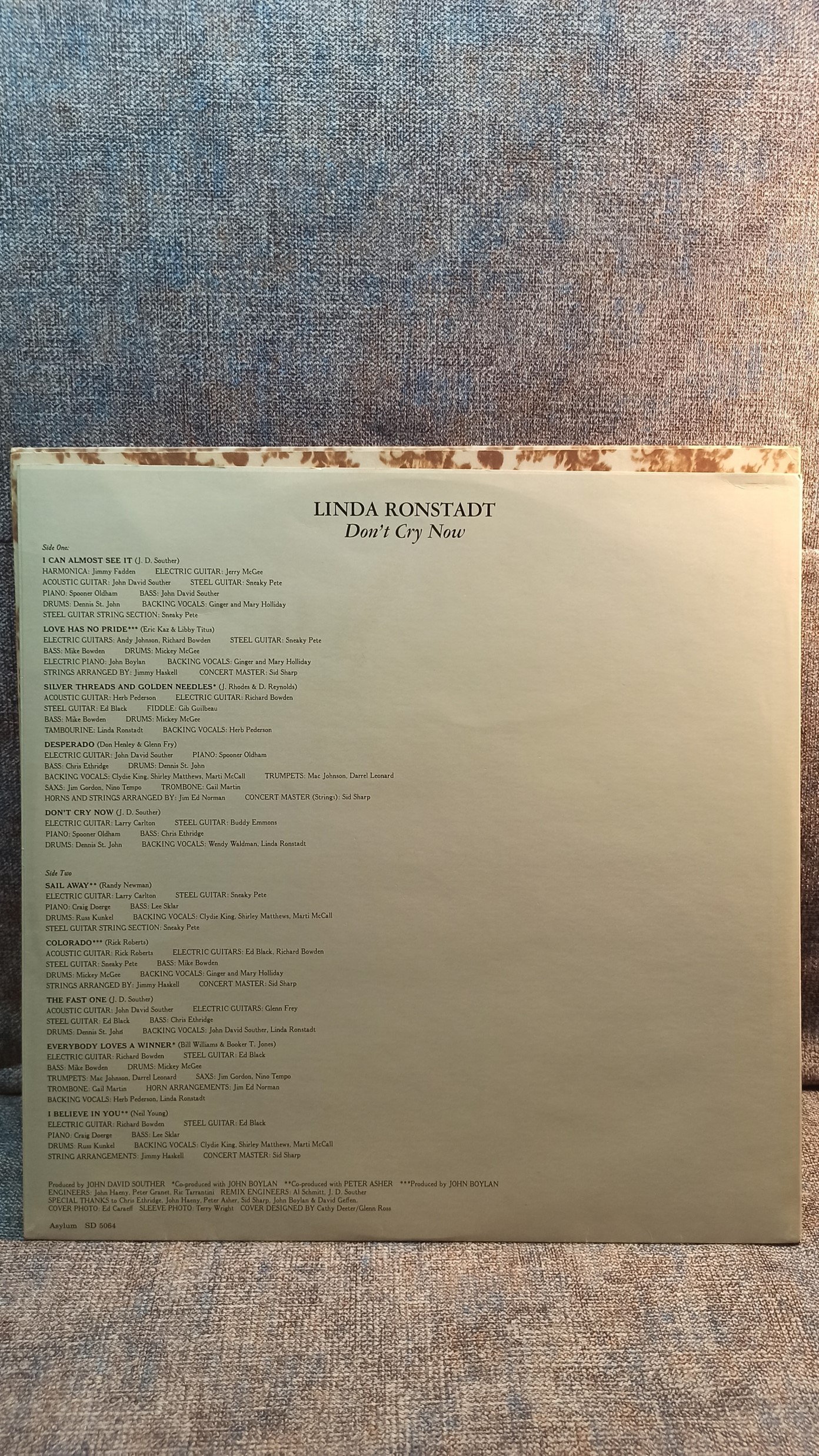 LINDA RONSTADT Don`t Cry Now Asylum Rec. USA SD-5064 Ex/Ex 900