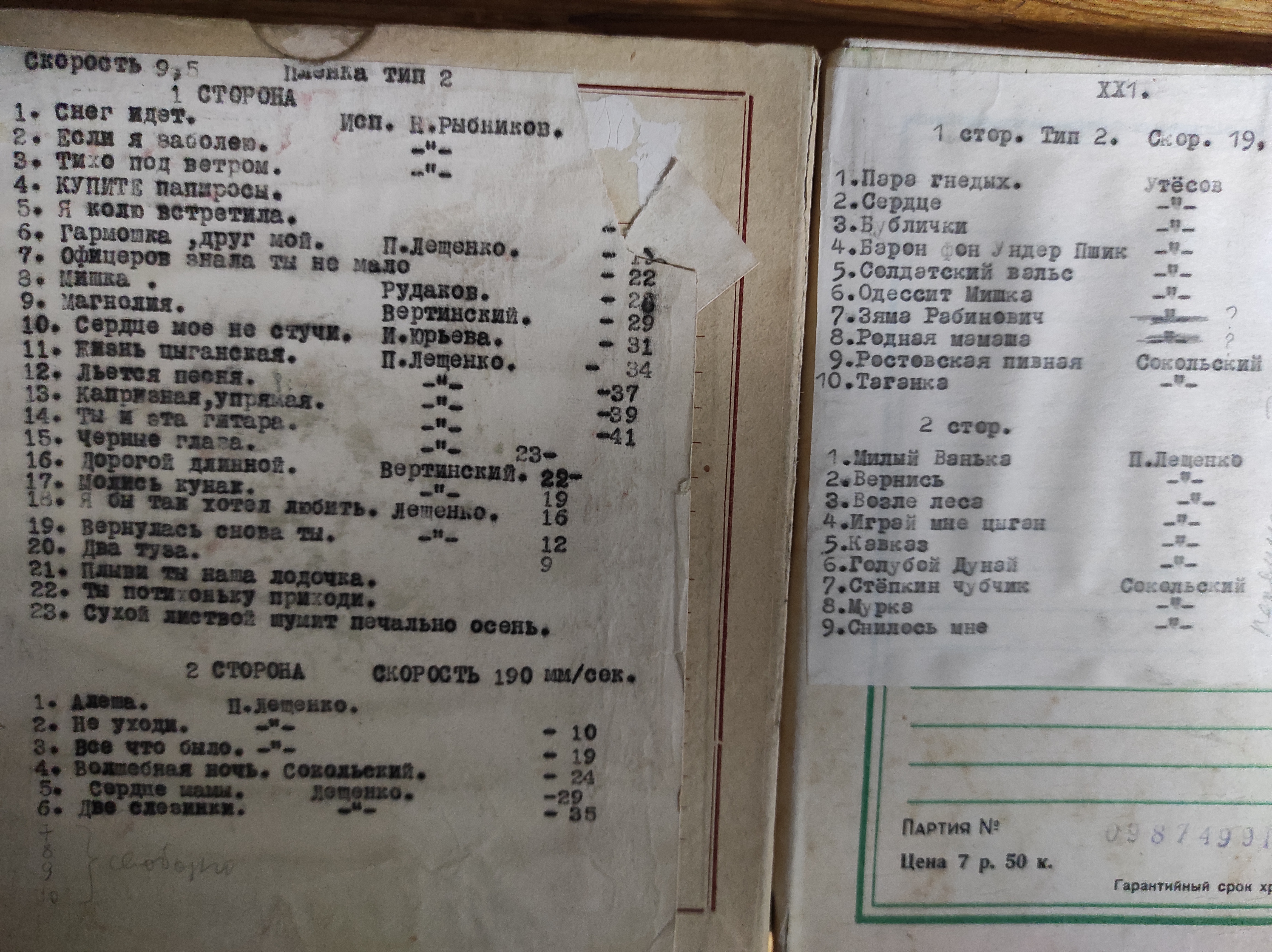 Магнитная лента с древними записями П.Лещенко, Утёсова и т.п