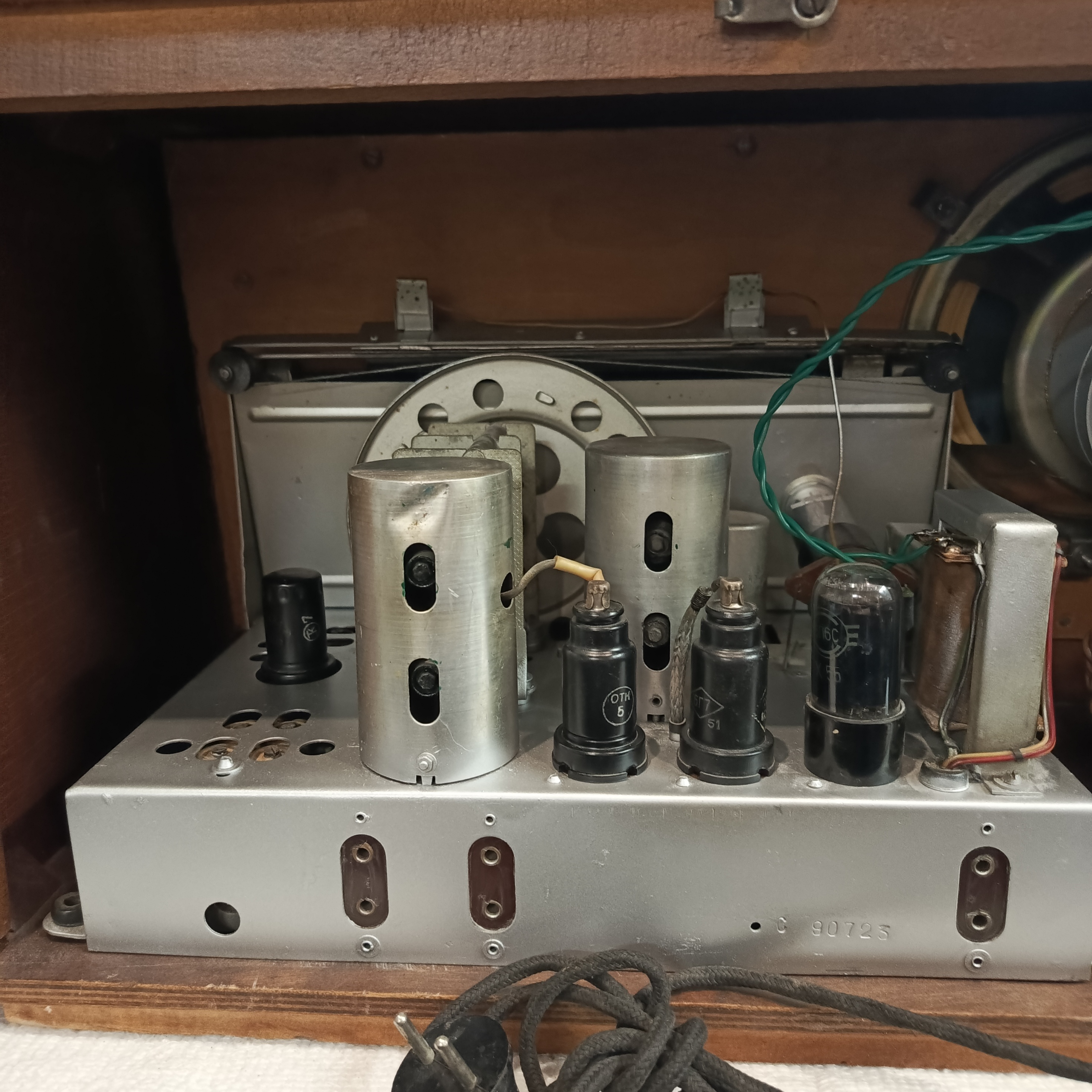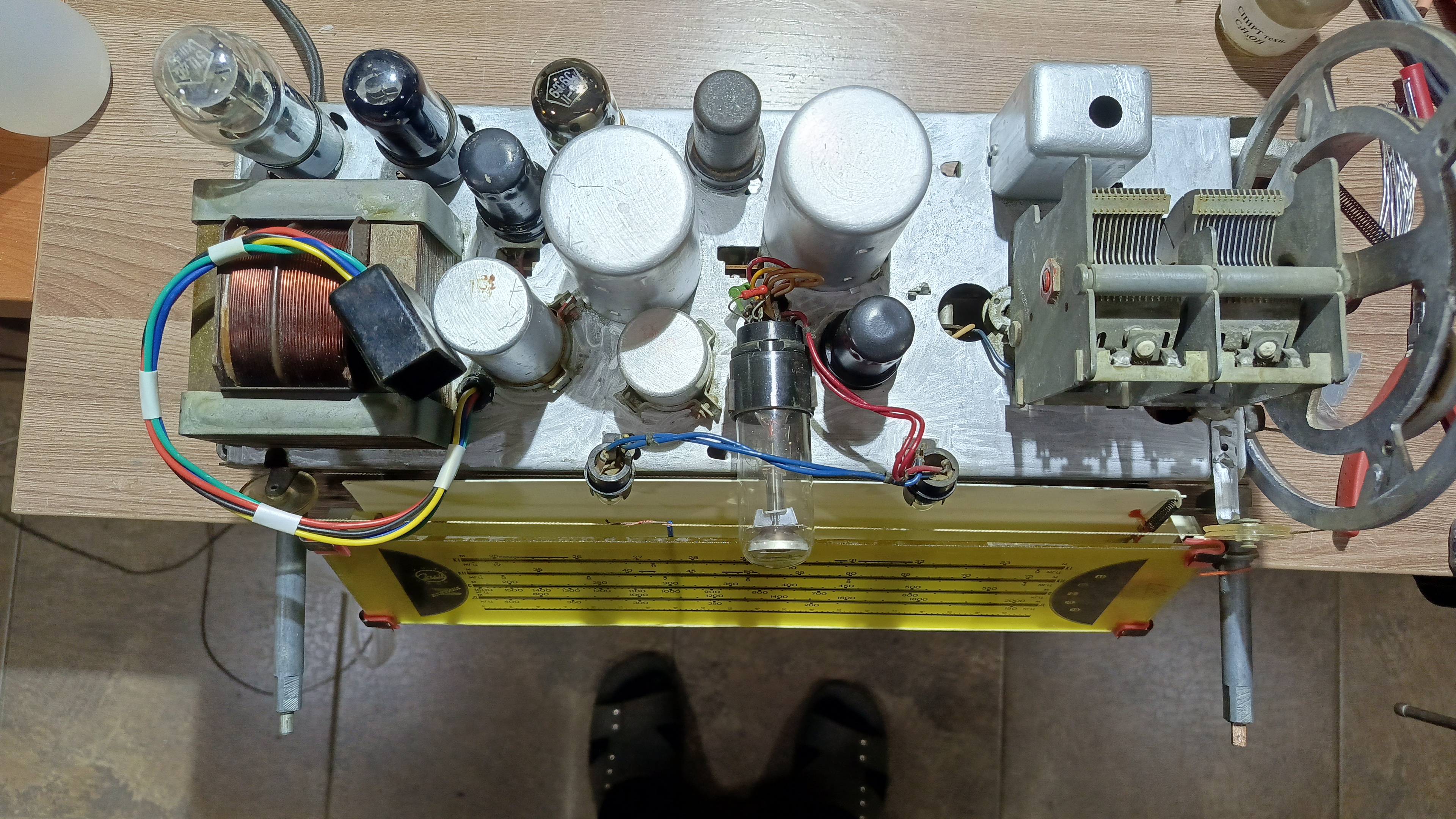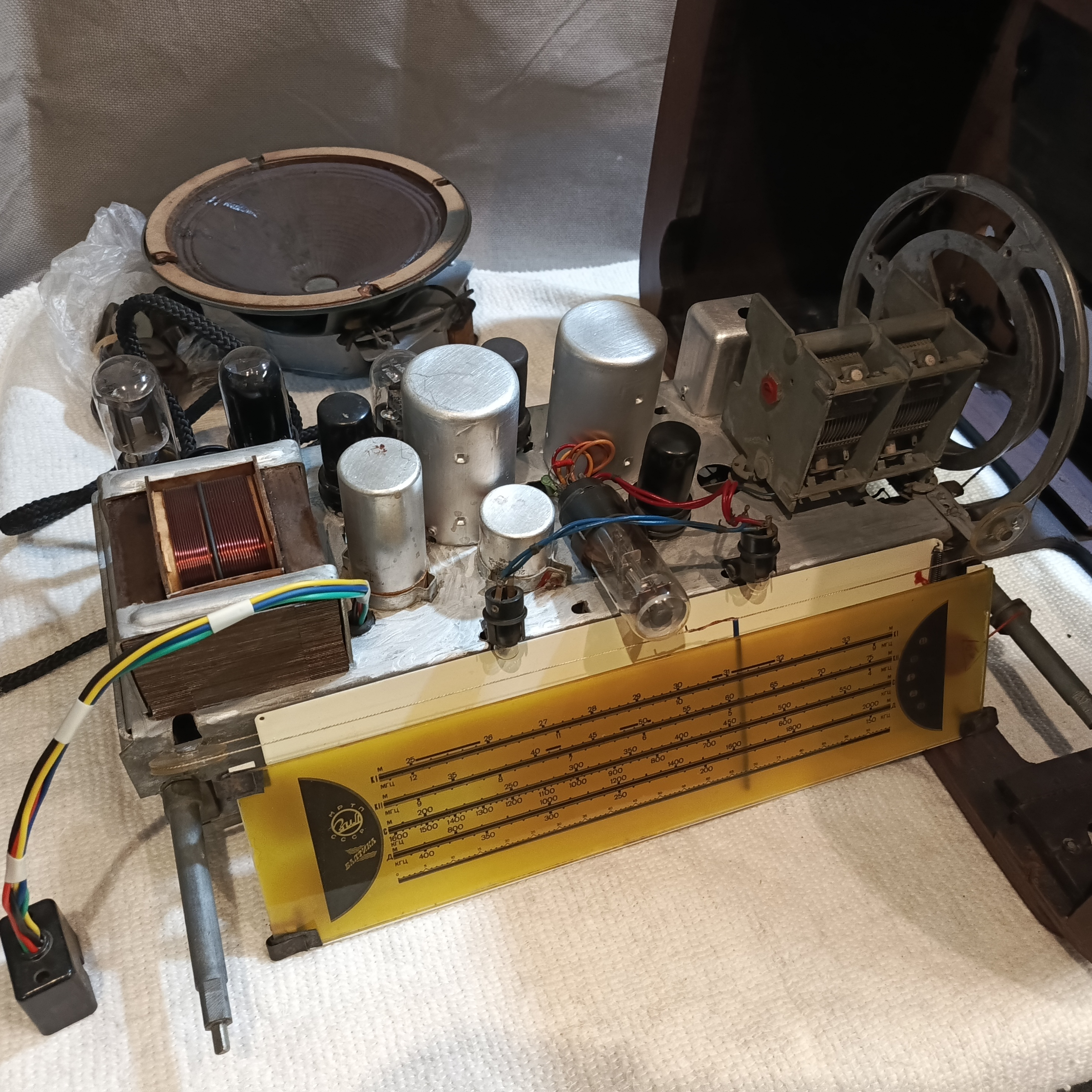 Шасси помыто отревизировано, на удивление работ по нему было немного: отремонтированы оборванные контура ДВ и КВ-II, отремонтирован выключатель сети, да припаян разъём динамика с новыми проводами.