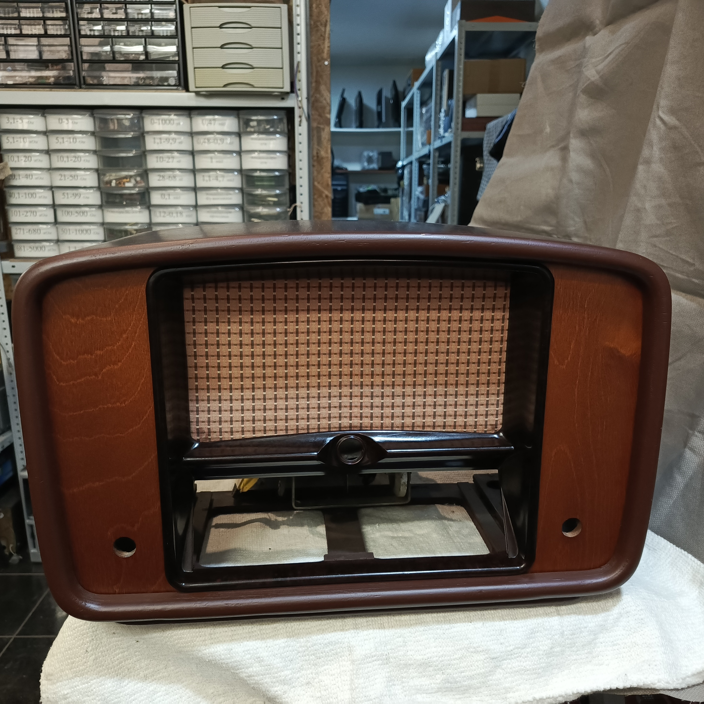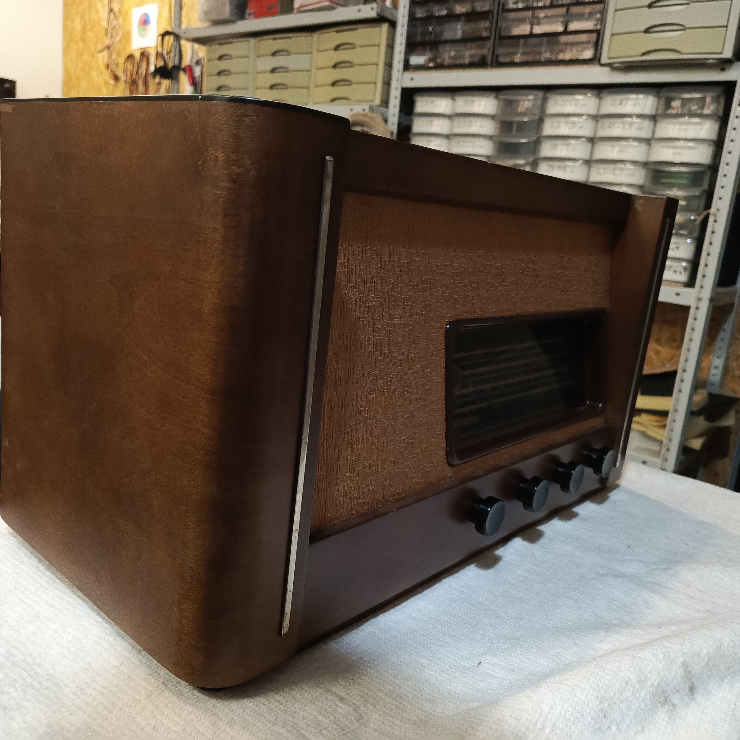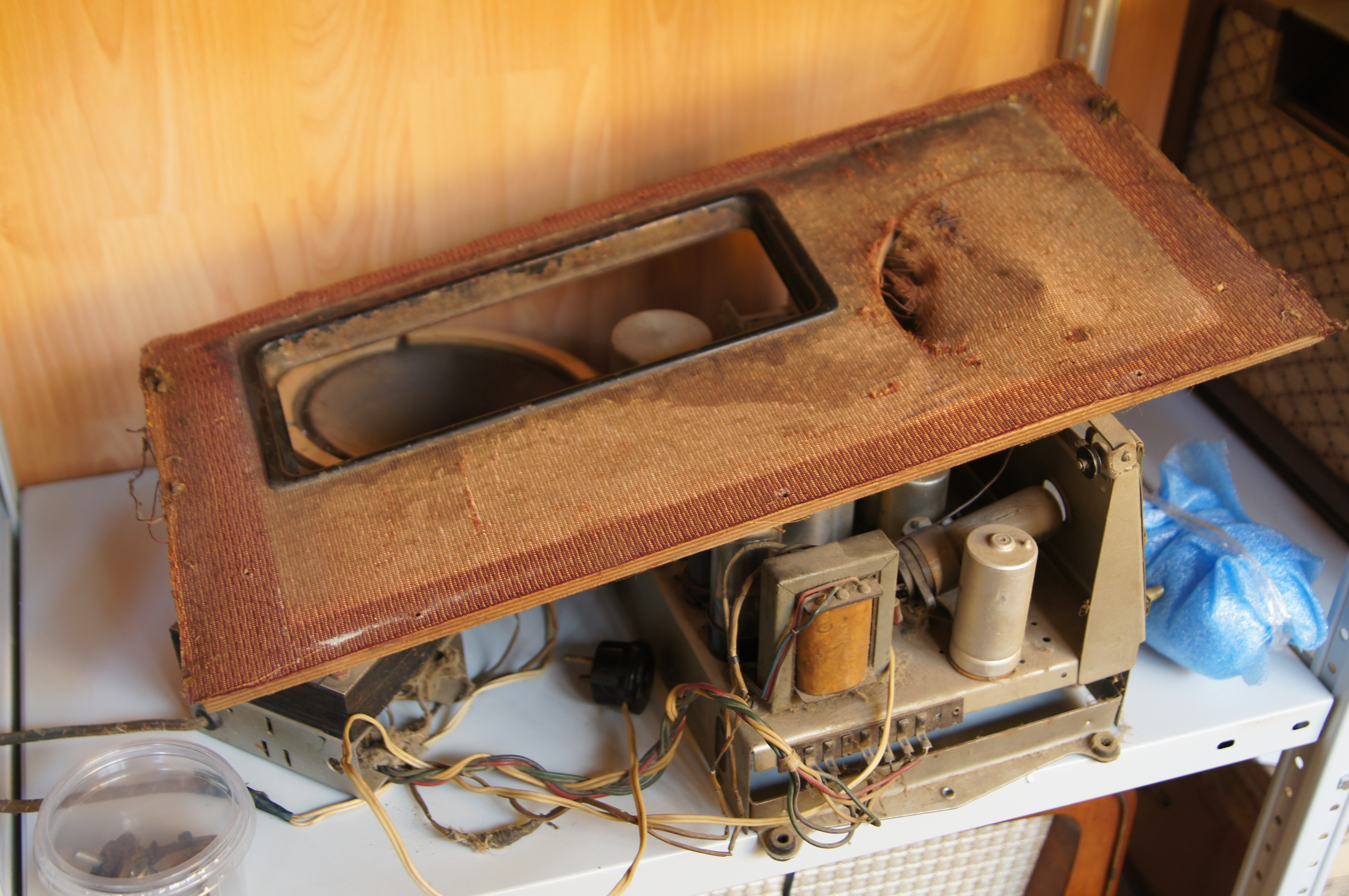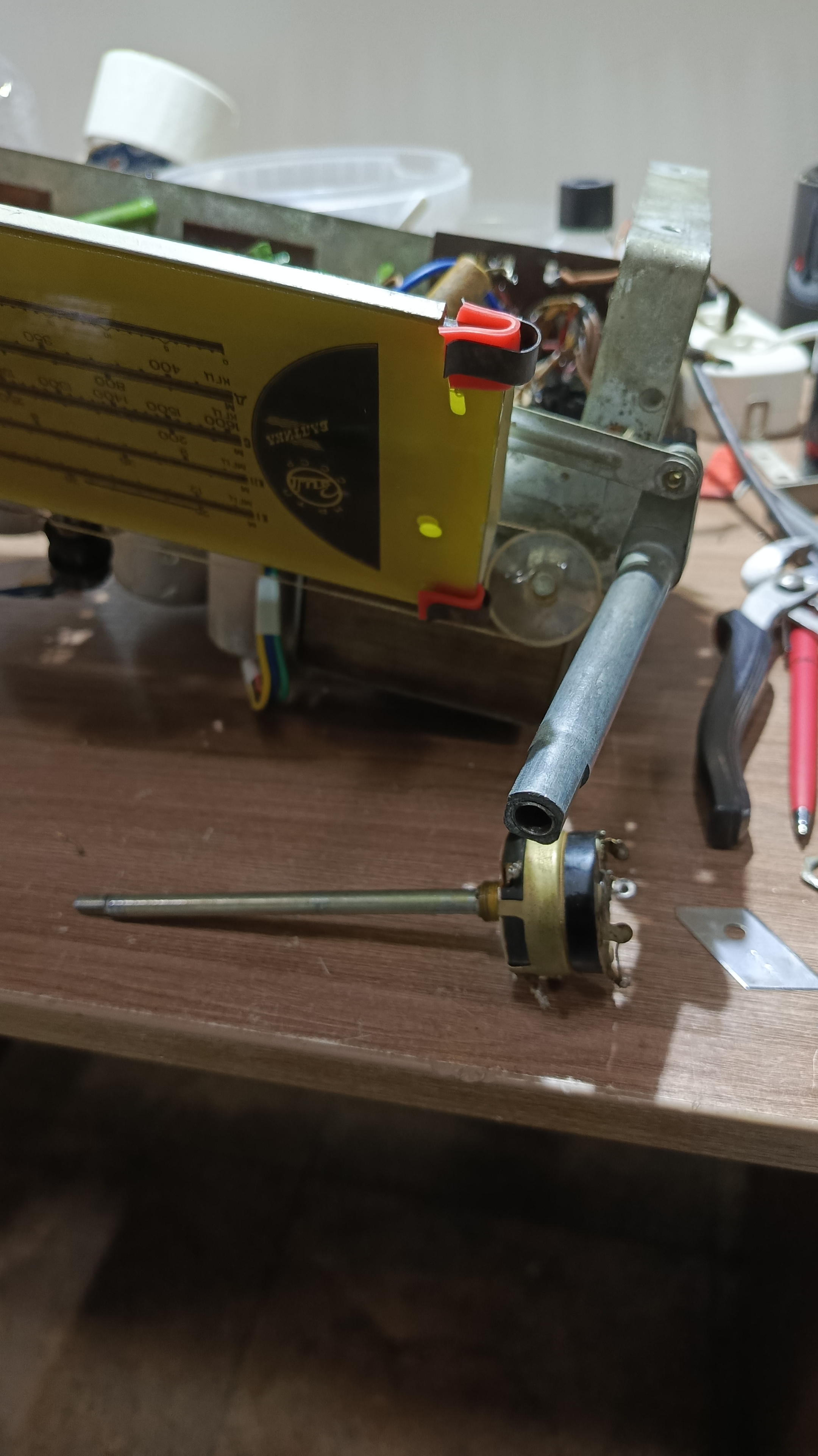 Шасси помыто отревизировано, на удивление работ по нему было немного: отремонтированы оборванные контура ДВ и КВ-II, отремонтирован выключатель сети, да припаян разъём динамика с новыми проводами.