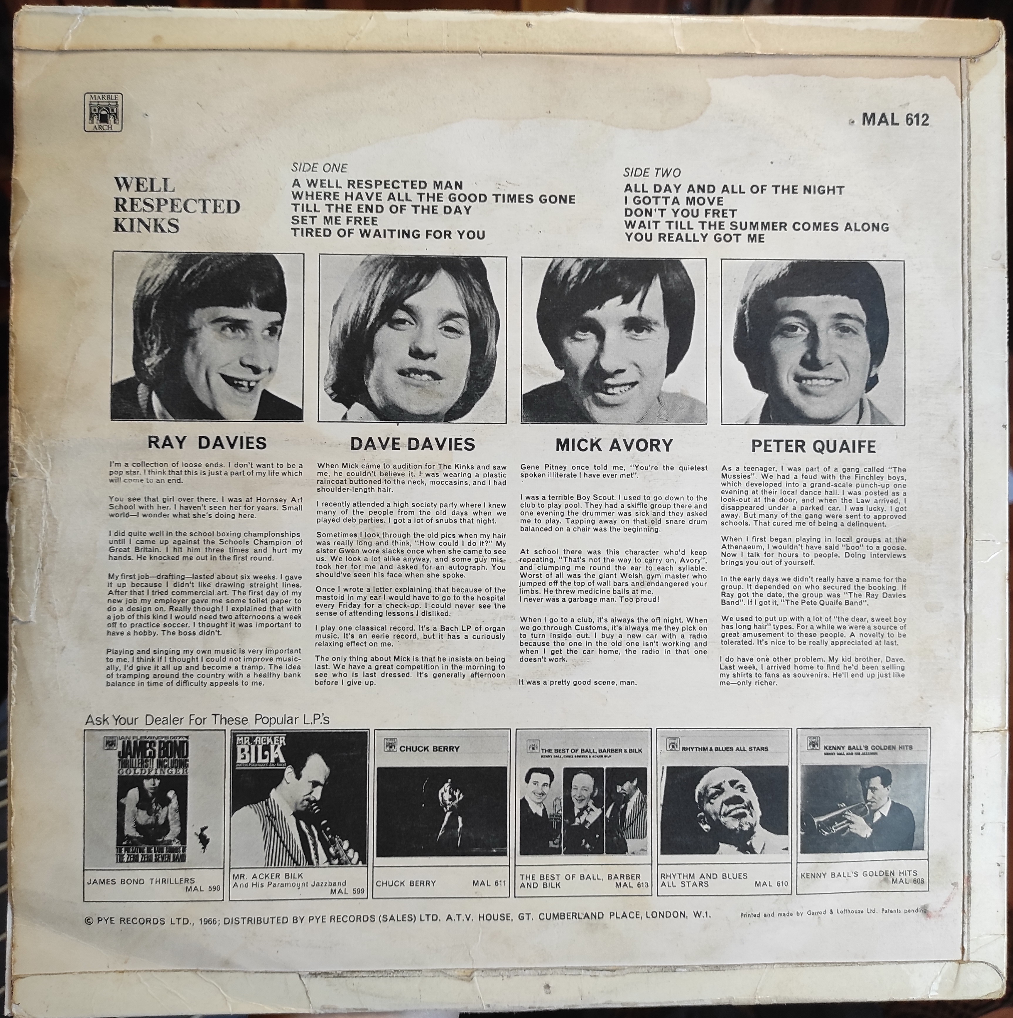 The Kinks "Well Respected Kinks" 1966 UK (оригинал) VG/VG+ 2300