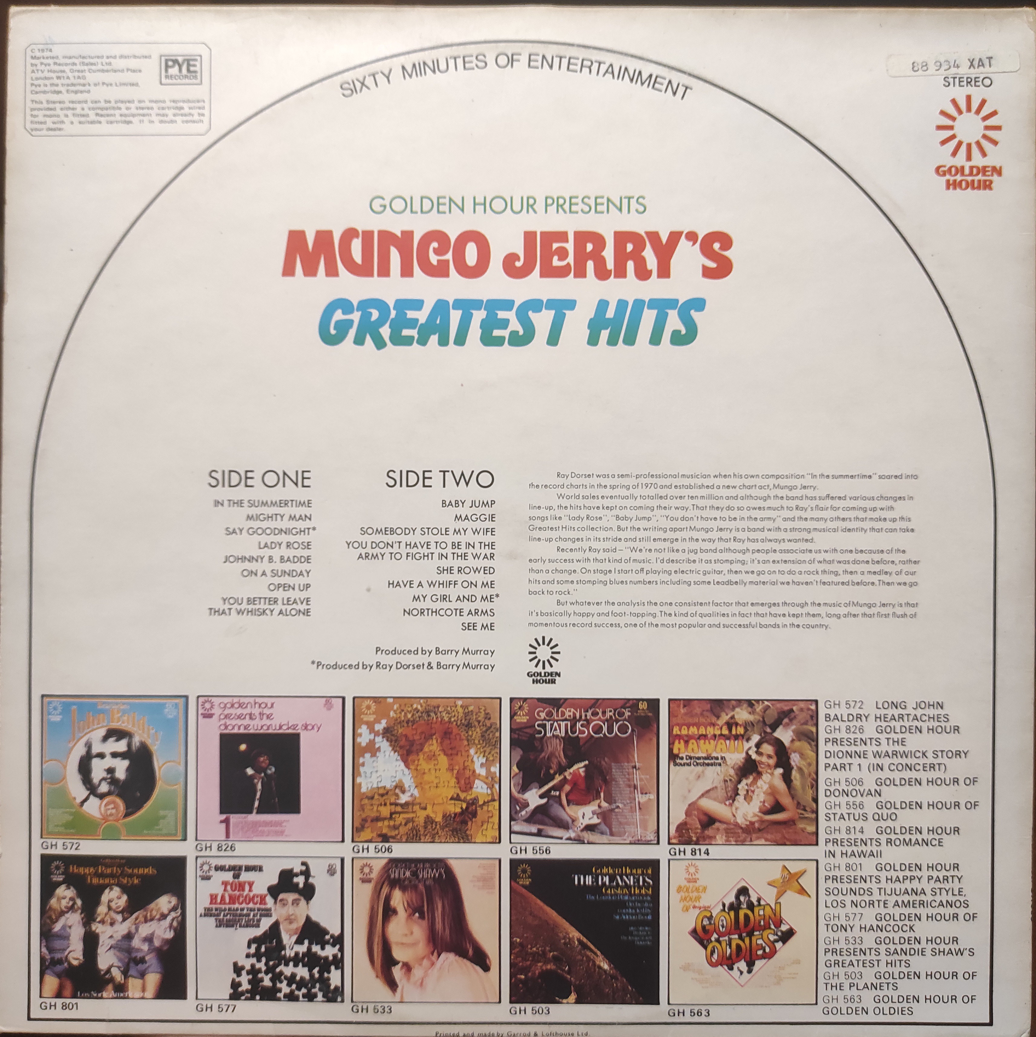Mungo Jerry "Golden Hour Greatest Hits" 1974 UK NM-/NM 2500