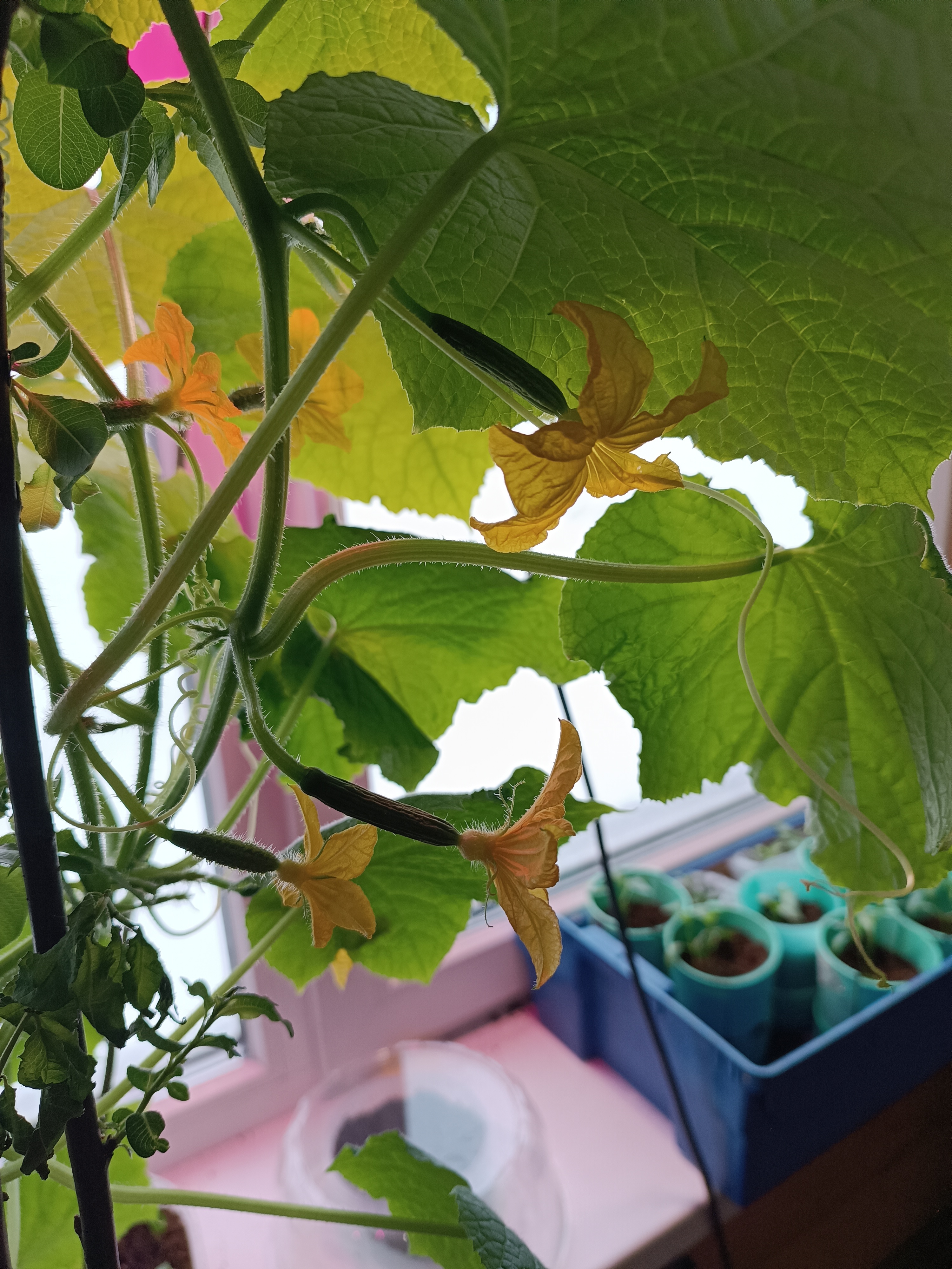 В прошлом году сажал балконное чудо. В апреле были огурцы. Потом пересадил все это в теплицу, и плодоносили до конца октября.