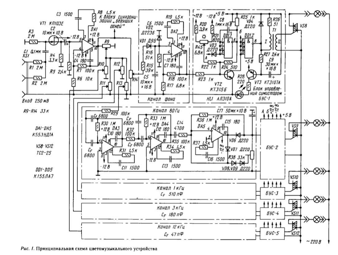 В кружке радиоэлектроники, в начале 80-х годах, паял самую простейшую трехканальную ЦМУ на КУ202Н. Благо, все предоставлялось "Клубом Юных Техников".