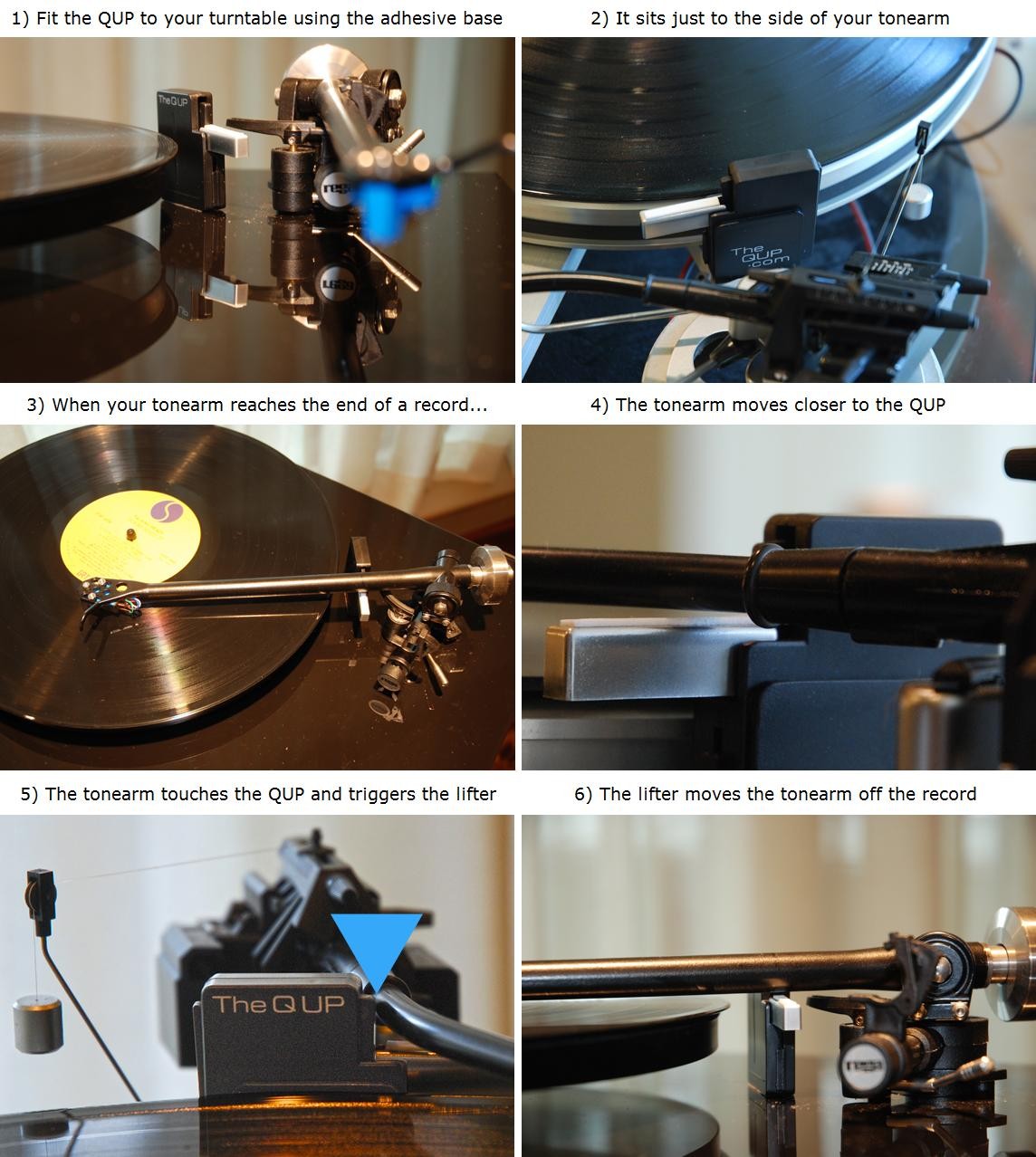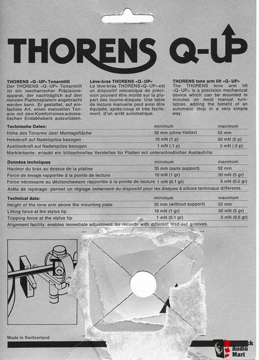 У меня был швейцарского производства Thorens Q-up. Работал безупречно в течении трех лет сначала Thorens TD 165, потом с 166 и был проданивместе с вертушкой. Насчет пластика, не помню, казалось что металл. А вот насчет стрелялок - не было такого, мягко поднимал. Посмотрел на ютубе современные лифты аналогичной конструкции - все плавно поднимают. Вот фото из сети, который у меня был