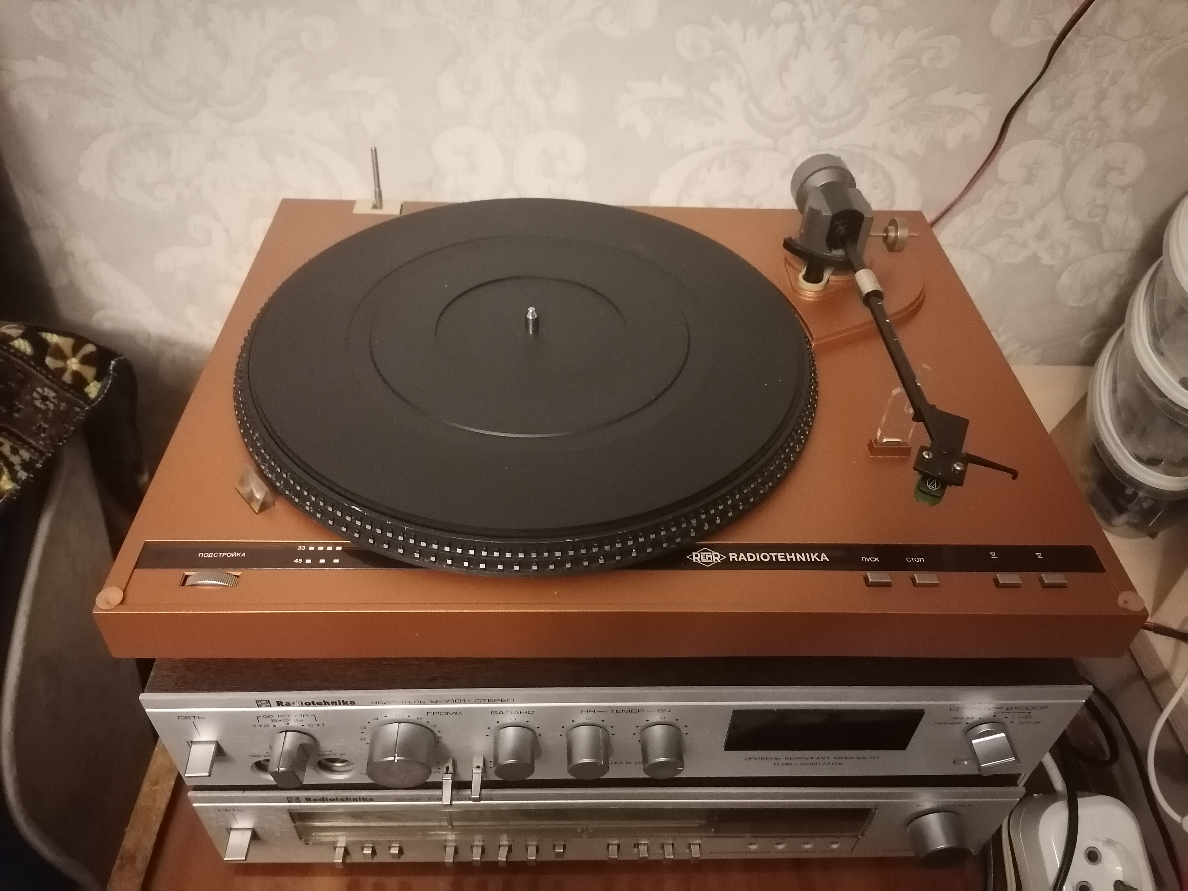 Replicar AudioTechnika АТ120 на вашем вертаке ровесница аппарата ? Я тоже юзаю АТ 120 тока она вся позолоченная и вставка жёльтая.