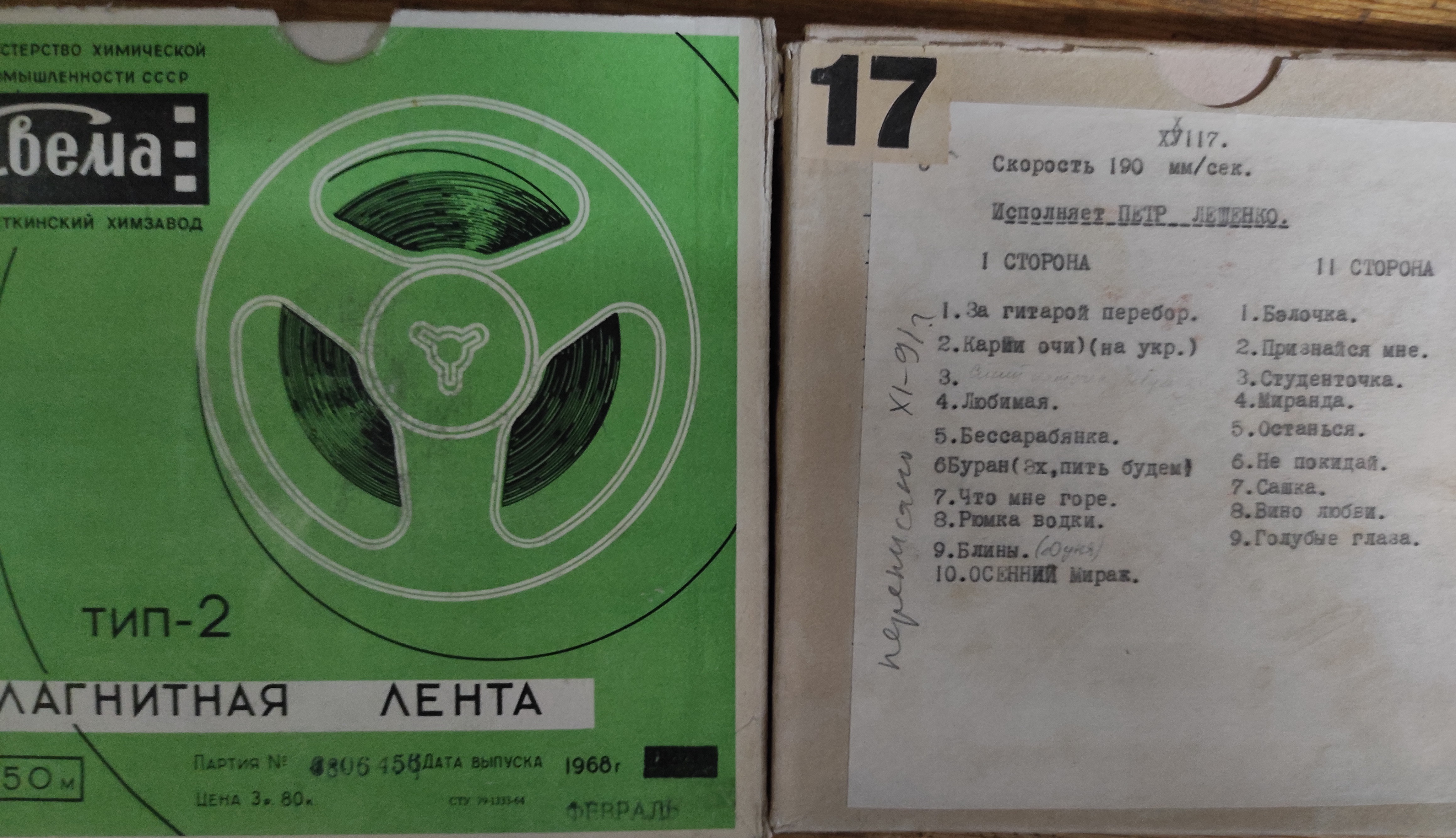 Магнитная лента с древними записями П.Лещенко, Утёсова и т.п