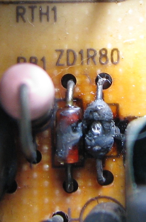 На фото сгоревшие (все они в первичной цепи БП) детали и место их установки.