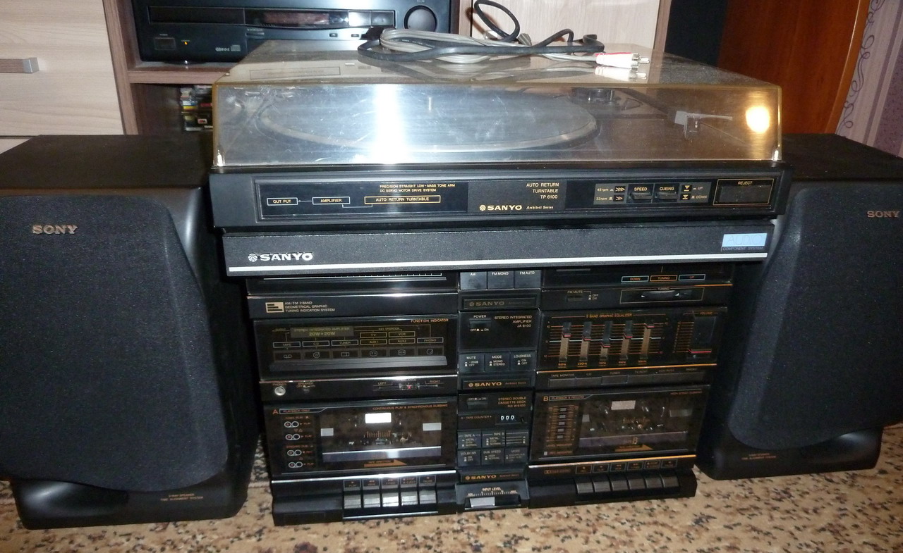 Усилитель, тюнер, дека, проигрыватель винила, всё в рабочем состоянии. В наличии деревянный подиум для проигрывателя винила. Тюнер УКВ (64-75 мГц, нужен конвертер УКВ-FM). Дека в отличном состоянии, пасики, ролики, головки в норме. Проигрыватель винила тоже в норме, установлена новая игла. Пылезащитный колпак чистый, без сколов и трещин. Усилитель выдаёт хороший и сбалансированный звук, коммутация и регуляторы пяти полосного эквалайзера и громкости работают чётко, без шорохов и скрипов. Выходной каскад на транзисторах. Вместо родных колонок используются Sony SS-H801V, 6 Ом, 150 Вт и выдают весьма достойное звучание с хорошими басами. Косметика комплекта очень хорошая, с минимальными огрехами. Цена за комплект 25 000 р. Возможна продажа комплекта по отдельности, тюнер-дека-усилитель, акустика, проигрыватель с деревянным подиумом.